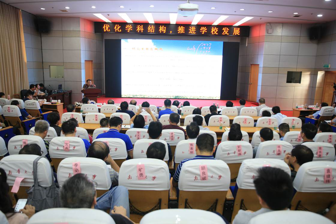 当前,全校上下深入开展“不忘初心、牢记使命”主题教育,在党委书记高山、校长张灼华的带领下,校领导班子通过密集的“四不两直”式调研,找到制约学校坚守“为党育人、为国育才”初心、承担“办人民满意的高水平大学”使命的关键问题之一——特色一流学科还不能让人民满意。9月20日下午,校党政领导班子本着立行立改的作风,邀请国务院学位办学位管理处处长欧百钢来校指导,举办“优化学科结构、推进学校发展”报告会。校长张灼华主持报告会,全体校领导、各学科带头人、职能部门负责人、学院全体院领导、系室主任、附属医院全体院领导参加。