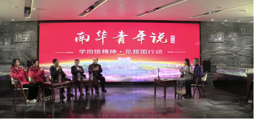 直播在观看VCR学习习近平总书记两封回信精神中正式开始。学习了总书记的回信,大家纷纷表示深受鼓舞,现场青年代表、南华附一医院援鄂医疗队员曹慧玲、黄瑜清,在医学健康观察点的青年代表、南华附二医院援鄂医疗队尹艳、洪余德分别回忆驰援湖北的难忘情景,表示将时刻牢记总书记的谆谆教导,不忘初心、牢记使命,勇担医护工作者责任,为国家和人民奉献属于自己的青春力量;核科学技术学院罗文和马克思主义学院尹江铖两位青年教师代表感言应以习近平总书记的谆谆嘱托为思想引领和行动指南,践行“科技为民、科学报国”的初心和使命,勇担“为党育人、为国育才”的职责和重任;湖北孝感社区志愿者、2018级本科生夏昊,西部计划志愿者(西藏拉萨)、2019届毕业生秦祺祺,全国人大代表、2014届毕业生向伟艺等3位青年学生代表呼吁,要用实际行动证明新一代青年人是可以堪担大任的,作为南华人,要秉承南华精神,飞得再远不忘南华根,走得再远不丢南华魂。