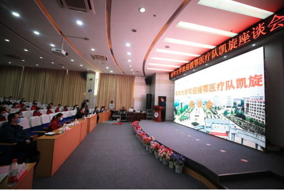在我校三支援鄂医疗队队员全部解除医学观察之际,4月26日上午,校党委书记高山主持召开欢迎援鄂医疗队凯旋座谈会。全体援鄂医疗队员、校领导、相关职能部门、附属医院及医科学院负责人参加座谈会。