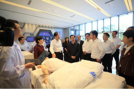 在考察过程中,许达哲询问了学校近期发展的状况,详细了解了学校及合作企业科研攻关、成果转化、产业孵化等情况。他指出,要坚持面向科技前沿、面向国家战略需求、面向经济主战场,完善产学研用模式和机制,为解决关键核心技术“卡脖子”问题、推动供给侧结构性改革、提升发展质量和效益不断努力。