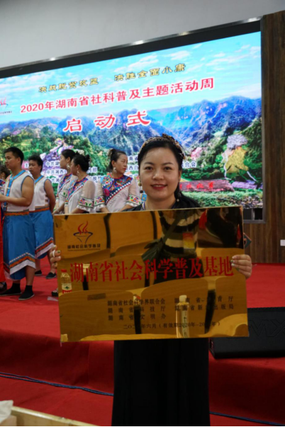 近日,2020年湖南省社科普及主题活动周在湘西自治州花垣县十八洞村启动。此次活动由省委宣传部、省社科联主办,湘西州委宣传部、州社科联承办,活动主题为“决战脱贫攻坚 决胜全面小康”。启动式上,我校压花艺术科普基地被授予“湖南省社会科学普及基地”,是全省第八批23家授牌单位之一,也是全国首个压花艺术科普基地。