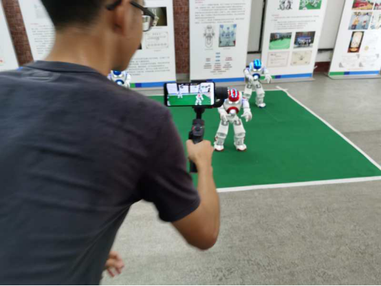 创新创业园里NAO机器人现场表演舞蹈