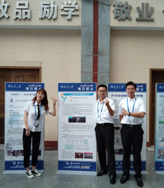 《V—safe放射性尾矿库智慧安全计划》项目负责人陈逸凡说到:“参赛作品来源于我和我师兄弟几个平时的科研成果,之前从未参加过双创大赛,所以想尝试一下。为了准备这次比赛我们请了诸多领域内的专家为我们提修改意见,打磨作品。学校也请了专家为我们的PPT进行打磨,许多细节让我们受益匪浅。”