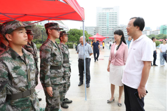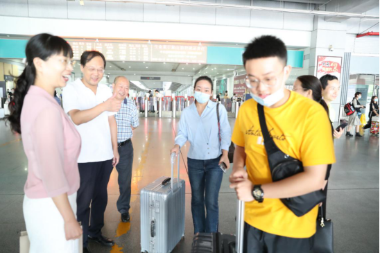高山一行先后来到衡阳高铁站、火车站、中心汽车站和各学院的迎新接待点。每到一处,高山和迎新工作人员及青年志愿者一一握手,对积极参与迎新的师生们表示慰问和感谢。高山详细询问各迎新接待点的工作流程及新生的报到情况,与到达接待点的新生及家长进行亲切交谈,“你们来自哪里?”“小孩学什么专业?”“报到手续办好了吗?”“学校微信导视图清不清晰?”并代表学校向他们的到来表示热烈欢迎,勉励新生们好好把握大学阶段的美好时光,下得苦功夫,求得真学问,度过充实而有意义的大学生涯。