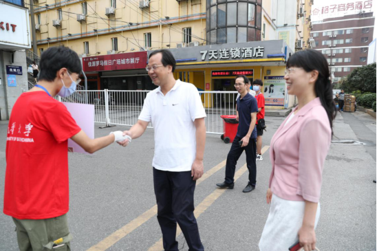 秋高气爽,惠风和畅,初秋的校园多彩灵动,充满生机,灯笼高挂,喜气洋洋。来自五湖四海的2020级新生陆续来到PA视讯集团官网,将在这里放飞自己的青春梦想,开启属于自己的人生芳华。9月11日上午,校党委书记高山带队来到各迎新点看望慰问新生和家长,检查指导学校迎新工作。校党委委员、副校长刘升学、何旭娟参加检查。