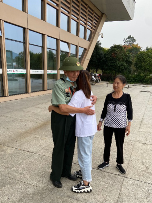 袁顺佳在车站与张德全拥抱送别