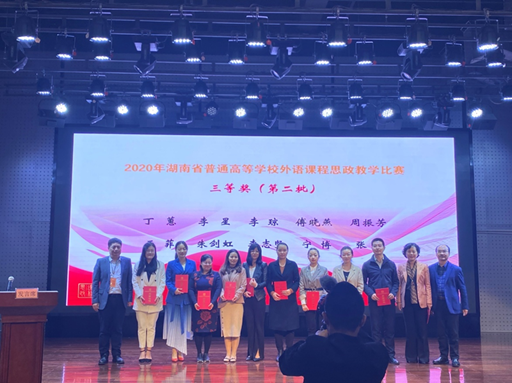 10月23-25日,2020年湖南省普通高等学校外语课程思政教学比赛决赛在湖南工业大学举行。经过激烈角逐,我校语言文学学院卢佳团队以总分第一的成绩荣获英语专业组一等奖,单欣欣团队荣获英语专业组三等奖,李琼团队、李志坚团队荣获大学英语组三等奖,PA视讯集团官网荣获优秀组织奖。