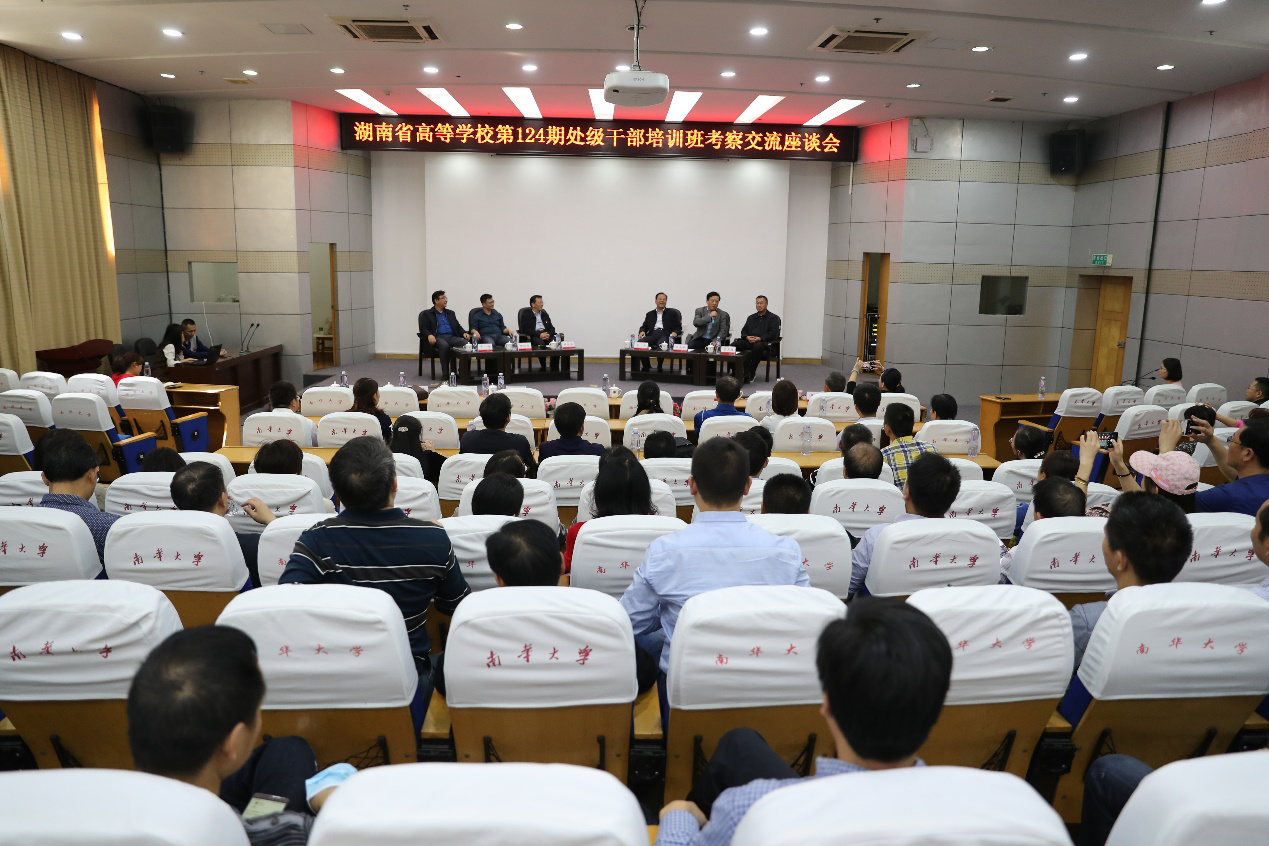 湖南省高等学校干部培训中心副主任张和生、湖南省高等学校干部培训中心教务部主任王青沅、湖南省高等学校干部培训中心教务部干事周维及湖南省高等学校第124期处级干部培训班全体学员等百余人参加。