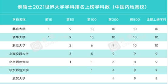 表.湖南省各高校2021年度泰晤士世界大学学科排行榜情况