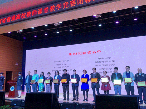 10月31日,2020年湖南省普通高校教师课堂教学竞赛现场决赛在湖南警察学院落下帷幕,我校衡阳医学院彭娟获理科组一等奖,资源环境与安全工程学院张楚旋获工科组一等奖,同时两位获奖教师获得湖南省普通高校教学能手荣誉称号。学校被授予优秀组织奖。