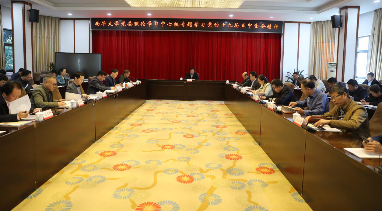 高山强调,各级领导干部和党员同志要提高政治站位,深刻认识党的十九届五中全会的重大意义;深入学习领会,准确把握精神实质;推进全面贯彻落实,用全会精神引领学校高质量发展。各二级单位党委要把全会精神作为中心组学习、教职工理论学习的重要内容,各级党员领导干部要先学一步、学深一层,做到内化于心,外化于行;要推进全会精神进课堂、进头脑,积极发挥思政课主渠道作用,回应师生关切,准确地解读全会的精神;同时做好学校第四次党代会筹备和“十四五”规划的编制工作,开门问策,集思广益,把情况吃透、问题挖深、对策找准、举措落细落实,推动党的十九届五中全会精神转化为学校高质量发展的生动实践;要坚持党要管党、全面从严治党,持续营造风清气正、干事创业的良好政治生态和自然生态,巩固深化“不忘初心、牢记使命”主题教育成果,聚焦第五轮学科评估、学位点申报等当前工作发力,以只争朝夕的精神,久久为功的态度,追赶超越的气魄、攻坚克难的勇气,把握机遇、乘势而上,开拓进取、扎实工作,奋力开创学校高质量发展新局面,为建设社会主义现代化教育强国,为富饶美丽幸福新湖南的建设作出更大贡献!
