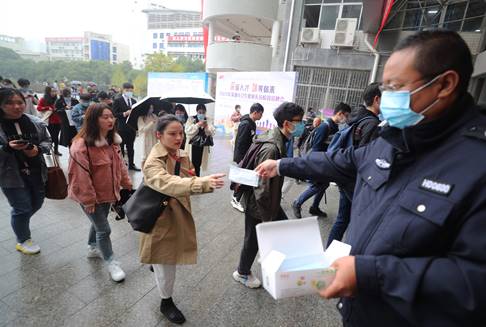 保卫处工作人员发放口罩