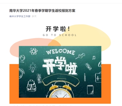 2021年春季学期开学在即,学生工作部认真做好常态化疫情防控形势下的开学各项工作。根据疫情防控形势和我校实际情况,2月12日(农历正月初一),学生工作部向各学院、广大南华学生发布《PA视讯集团官网2021年春季学期开学报到方案》。各学院从2月13日起建立工作台账,精准掌握每名学生及其共同居住人员开学前14天内的身体健康状况。