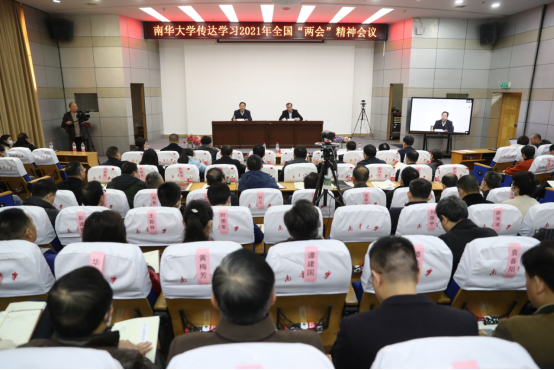 3月22日上午,学校召开传达学习2021年全国两会精神会议。全国人大代表、湖南省政协副主席、校长张灼华向全校师生传达了十三届全国人大四次会议、全国政协十三届四次会议精神。校党委书记高山主持会议。