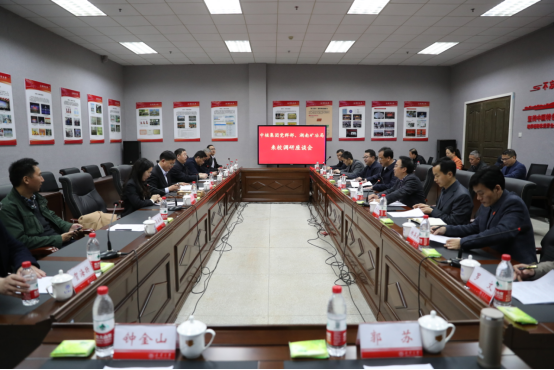中核集团党建研究中心干部李颖稚,中核二七二铀业有限公司党委书记、副总经理姚泽军,核工业湖南矿冶局安全总监、安环处处长张永祥,核工业湖南矿冶局人力资源处处长陈新春,湖南中核勘探有限责任公司总经理贺海洋,湖南中核热盐科技有限公司执行董事颜泽;我校党委委员刘永、刘文君,党政办、教育发展与校友联络部、研究生院、化学化工学院、资源环境与安全工程学院及“两弹一星”精神研究会指导老师参加座谈。