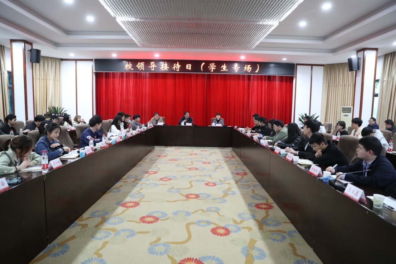 副校长何旭娟、雷小勇出席,党政办、组织部、宣传部、学工部、教务部、研工部、保卫处、后勤服务中心、团委、网络信息中心等相关职能部门负责人、各学院党委副书记和学院本科生代表、研究生代表、团委学生会代表、学生党员骨干代表等40余名学生代表参加此次校领导接待日活动。