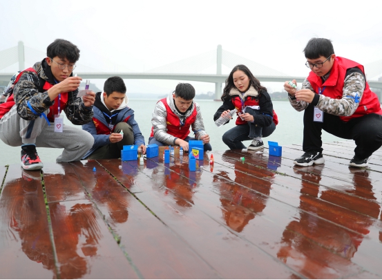 2021年3月21日,PA视讯集团官网土木工程学院的青年志愿者在衡阳市雁峰区东洲岛检测湘江水质。