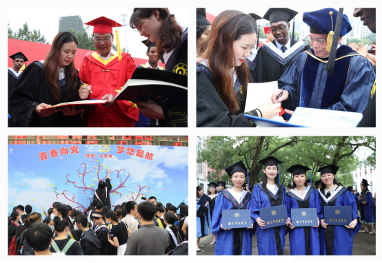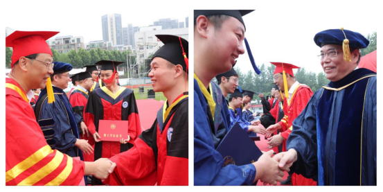 上午8:30,伴随着庄严的国歌声响起,全体与会人员面向国旗,肃立注目,齐声高唱国歌。留恋与不舍,感恩与铭记,期盼与希冀,万千心绪都交织在了这一次盛大相聚。在轻快的乐曲中,2021届十佳优秀毕业生、本科毕业生代表、留学生毕业生代表、硕士毕业生代表、博士毕业生代表相继踏上红毯、走上主席台。校领导为他们一一援正流苏、颁发学位证书。相机定格下学子们接过学位证书的一个个瞬间,记录下这历经艰辛耕耘、收获胜利果实的甜蜜时刻。