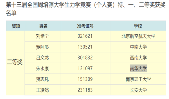 2021年度的力学竞赛已于上月落下帷幕,省级获奖结果也已评出,我校获得六个省级一等奖,成绩排名省属高校第一。近日,经过对各赛区推荐的优秀试卷进行重新评阅,中国力学学会公布了本年度国家级重要奖项的获奖名单——“第十三届全国周培源大学生力学竞赛(个人赛)特、一、二等奖获奖名单”。本次大赛共评选全国特等奖5名,全国一等奖92名,全国二等奖158名,我校土木工程学院2018级道桥专业学生朱永康荣获全国二等奖。另外,我校还收获国家三等奖5项,成绩喜人。今年我省省属高校仅两所高校获奖。