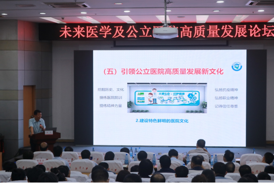 论坛第一阶段,由特邀嘉宾甘戈同志作专题报告。甘戈在主题报告中介绍了新中国成立以来我国公立医院改革发展历程和当前公立医院高质量发展的新时代要求,并从构建公立医院高质量发展新体系、引领公立医院高质量发展新趋势、引领公立医院高质量发展新效能、引领公立医院高质量发展新动力、引领公立医院高质量发展新文化、坚持和加强党对公立医院的领导等六个方面详细阐述了我国公立医院高质量发展的重点任务和实现路径。