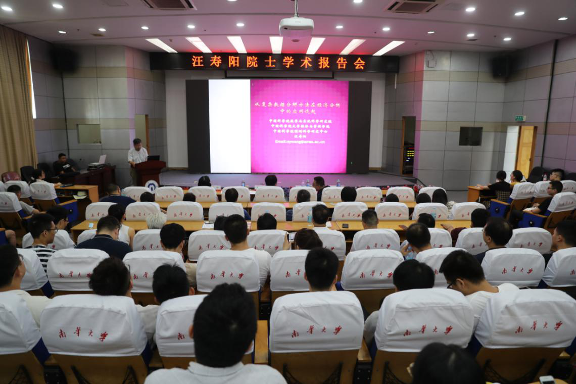 报告会上,汪寿阳教授主要聚焦经验模态分解(EMD)方法的起源和机理、经验模态分解方法在金融定价领域的应用和基于数据分解的事件分析方法的创新三个方面展开。讲座中,汪寿阳教授运用自身的研究案例,以风趣幽默的语言为在场师生讲解了如何运用EMD方法开展创新研究,激发了大家浓厚的兴趣,现场300余名师生代表认真聆听了报告。