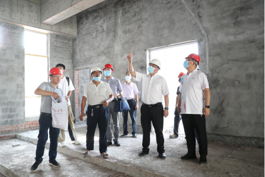 7月12日,校党委书记高山一行实地察看了雨母校区图书馆、工科楼、室内体育场、食堂、学生公寓及学生活动中心等即将完工和正在建设的工程项目,详细询问和了解了工程进度、安全质量管控、节点目标及园林维护等情况,并现场讨论研究相关问题的解决思路和办法。