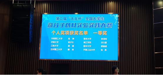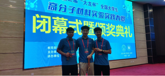 第二届“大龙”杯全国大学生高分子材料实验实践大赛(简称双实大赛)7月26日至30日在北京石油化工学院举行。43所高校的高分子专业300余名师生参赛。经过激烈角逐,全国共有26名同学荣获个人一等奖。我校郭镕硕同学获个人一等奖,卢浩凡、李懿承2名同学获个人三等奖。