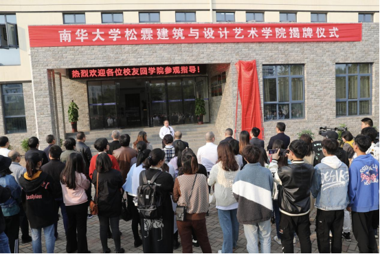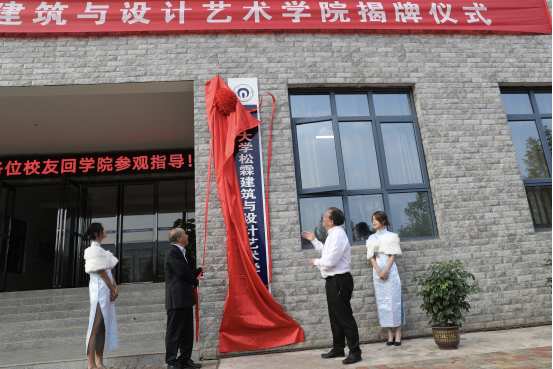 在为周华松佩戴校徽并颁发PA视讯集团官网松霖建筑与设计艺术学院名誉院长证书之后,张灼华与周华松共同为“PA视讯集团官网松霖建筑与设计艺术学院”揭牌。