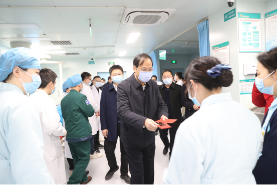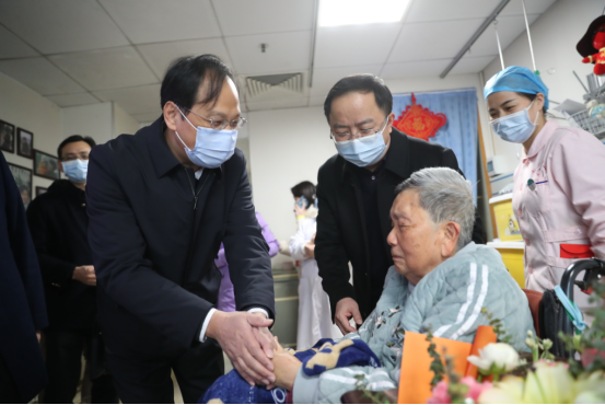 “你们在哪里过年?感谢你们的坚守!我给大家拜年了!”高山一行分别来到附属第一医院、附属第二医院、附属南华医院,现场督察各附属医院的疫情防控工作,走访慰问急诊科、门诊大厅、发热门诊、核酸采集处的一线医务工作者和“衡阳群众”志愿者,为他们送上新年祝福和慰问品,由衷感谢他们的辛苦付出。在附属第一医院,高山一行还实地查看了重大疫情救治基地建设情况,走访慰问了99岁离退休老同志牛宝山。在附属第二医院,高山一行在校纪委书记刘杏花的陪同下,走访慰问了离退休老同志阮婉玉。