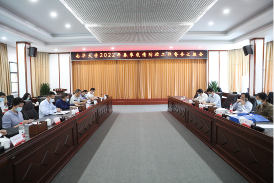 会上,姜志胜代表学校详细汇报了学校疫情防控各方面情况、疫情防控主要特色做法、存在的困难及下一步打算。他表示,学校深入学习贯彻习近平总书记关于疫情防控工作重要指示精神,认真落实中央、省、市有关部署安排,始终坚持把师生生命安全和身体健康放在第一位,以高度的政治责任感和紧迫感投入疫情防控阻击战,坚持统筹稳定与安全,坚决统筹发展与安全,充分发挥附属医院的优势,在疫情防控工作中用实际行动展现了南华人的责任与担当。下一步,学校将进一步落实责任,细化工作预案,完善相关机制,加强督促检查,坚决夺取疫情防控和实现年度发展目标的全面胜利。