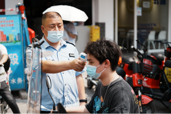 有人嫌麻烦,不愿意配合,甚至言语间充满人身攻击,但他不为所动,该提醒的时候提醒:“口罩要戴上,保护自己也是保护家人”;该强硬的时候强硬:“不符合规定的绝对不能进!”,情绪丝毫没有被左右,默默坚守到底。旁人看了都劝说他:“人家都这样说你了,你怎么还这么一根筋死守着呀,差不多就算了,放进去没事的。”可他坚决不同意,始终认为,在这个岗位上就要履行好自己的职责,只有这样,才对得起自己身上这身衣服。