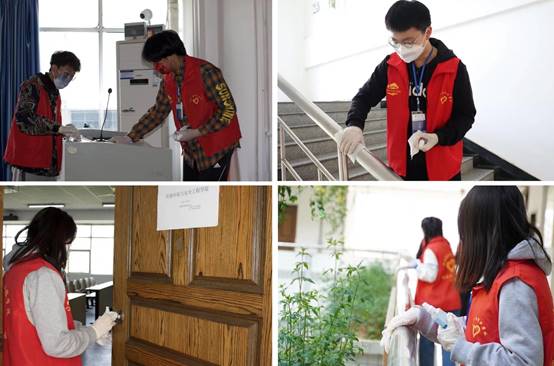 在土木工程学院,学院团委书记吴旦带领学院青年志愿者组建了全校第一支防疫消毒青年突击队,在老师的指导下定期对南华楼进行消毒清理工作,师生合力,为同学们营造安全卫生的学习环境。该院预备党员张钞自学校实行疫情防控措施以来,勇担重任,与其他团学干部、党员骨干共同组织530余人次参与到学校防疫工作中,并对学院值班的每一个岗位点逐一到场检查,查找工作漏洞,及时处理突发情况,带头做好一名学生党员志愿者的工作任务。