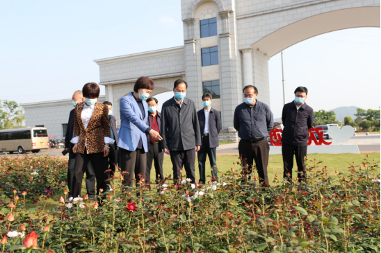 在雨母校区,黄兰香、李民一行参观了玫瑰园,对花园式校园优美的育人环境给予了高度赞扬。