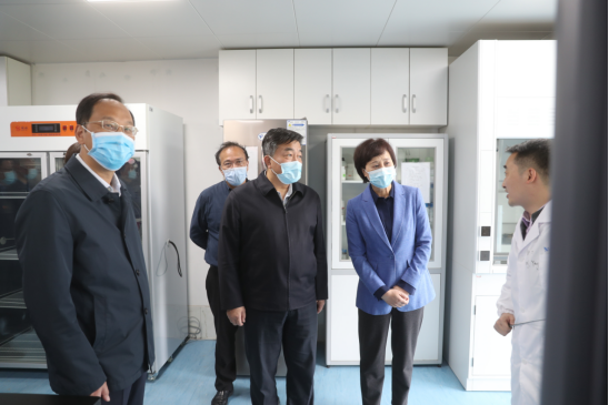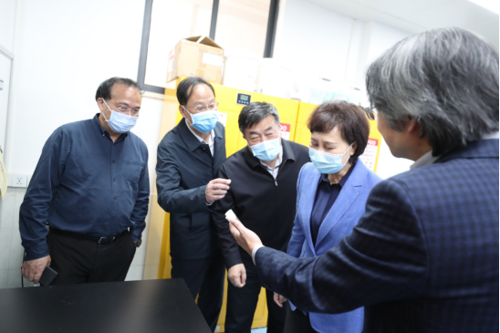 在红湘校区,黄兰香、李民一行先后考察了医研楼“辐射-线粒体与人类重大疾病”重点实验室和肿瘤分子生物学与标志物实验室、藏珑山激光应用联合实验室、科创楼理工类高层次人才实验室,并不时驻足,与在场教授和科研人员交流,详细了解氡辐射防护、肝癌诊断研究进展、新冠病毒研究、高性能激光广泛应用等有关情况。