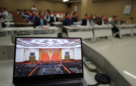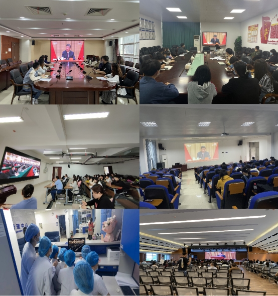 学校校领导、师生代表分别在红湘校区图书馆学术报告厅、红湘校区求是园大学生活动中心、雨母校区经济管理与法学学院310会议室3个集中观看点观看实况直播,各单位集中组织观看庆祝大会直播。