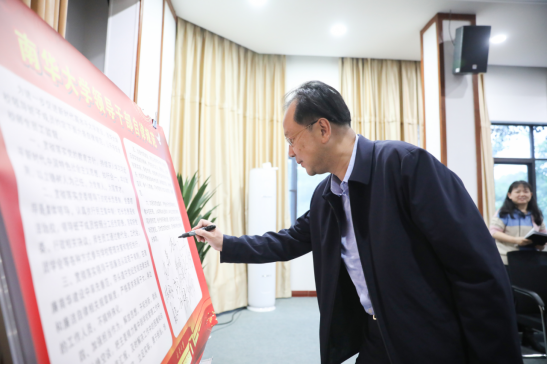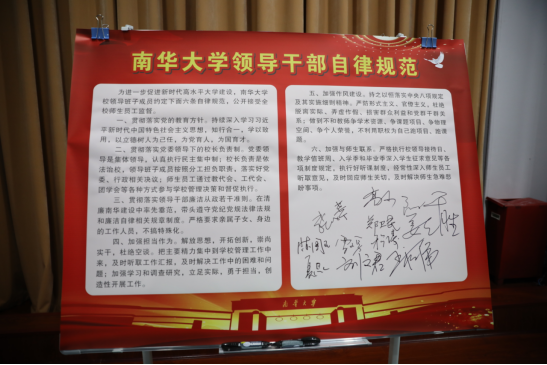 举行校领导干部自律规范签字仪式,公开接受全校师生员工监督,显示了新一届校领导班子建设新时代高水平大学的信心和决心。这是继学校在雨母校区校史馆举行“5·10”“接续奋斗开新局 奋楫扬帆再出发”廉洁警示教育活动后,新一届党委推进清廉南华建设又一创新举措。