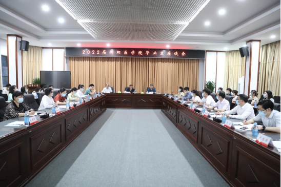 5月31日晚,学校在第一办公楼视频会议室召开主题为“喜迎二十大 建功新征程”的2022届衡阳医学院毕业生座谈会。校长张灼华,党委委员、副校长、衡阳医学院党委书记姜志胜,党委委员、副校长、衡阳医学院院长王福俤出席座谈会。会议由姜志胜主持。