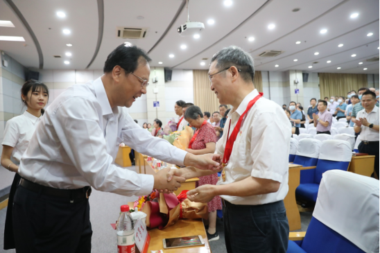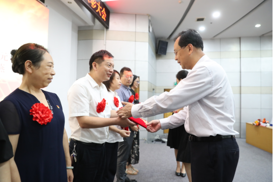 校党委委员、副校长雷小勇宣读表彰文件。高山逐一为学校2021-2022年度先进基层党组织、学校2021-2022年度10位优秀党务工作者、学校2021-2022年度优秀共产党员颁发荣誉证书。
