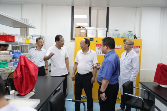邓建军一行现场调研了“辐射-线粒体与人类重大疾病”国家重点实验室培育基地、环境医学与放射卫生研究所、肿瘤分子生物学与标志物实验室、国家高等学校学科创新引智计划“染色质结构和功能与相关疾病创新引智基地”、高性能激光应用联合实验室的科研及成果应用等情况。