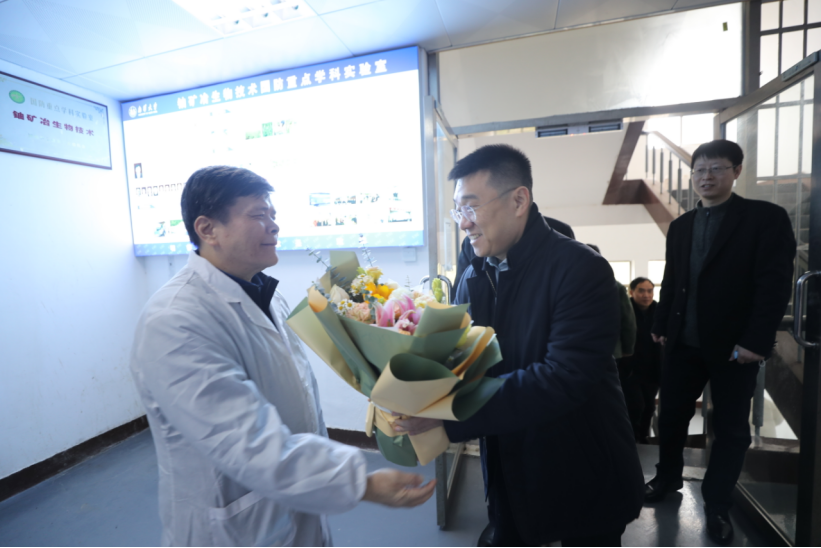 钟君一行还专程前往核燃料循环设施退役与治理研究院,看望了湖南教书育人楷模、“核工业粮食”的安全护卫者、中国铀矿采冶学科的“拓荒牛”丁德馨教授,并和团队成员亲切座谈。会上丁德馨教授及其团队成员讲述了丁德馨老师为我国核工业建成唯一培养铀矿采冶学士、硕士、博士、博士后完整学科体系的过程。