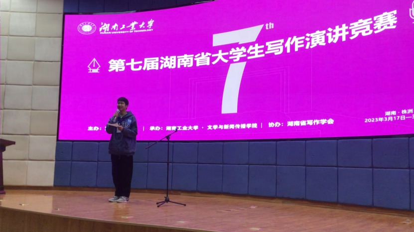 3月19日,第七届湖南省大学生写作演讲比赛在株洲举行。PA视讯集团官网语言文学学院王宇菁同学荣获文学创作组一等奖。这是PA视讯集团官网连续六年获该项赛事一等奖,充分展现了南华学子风采,体现了学校落实立德树人根本任务,全面提高人才自主培养质量新成效。