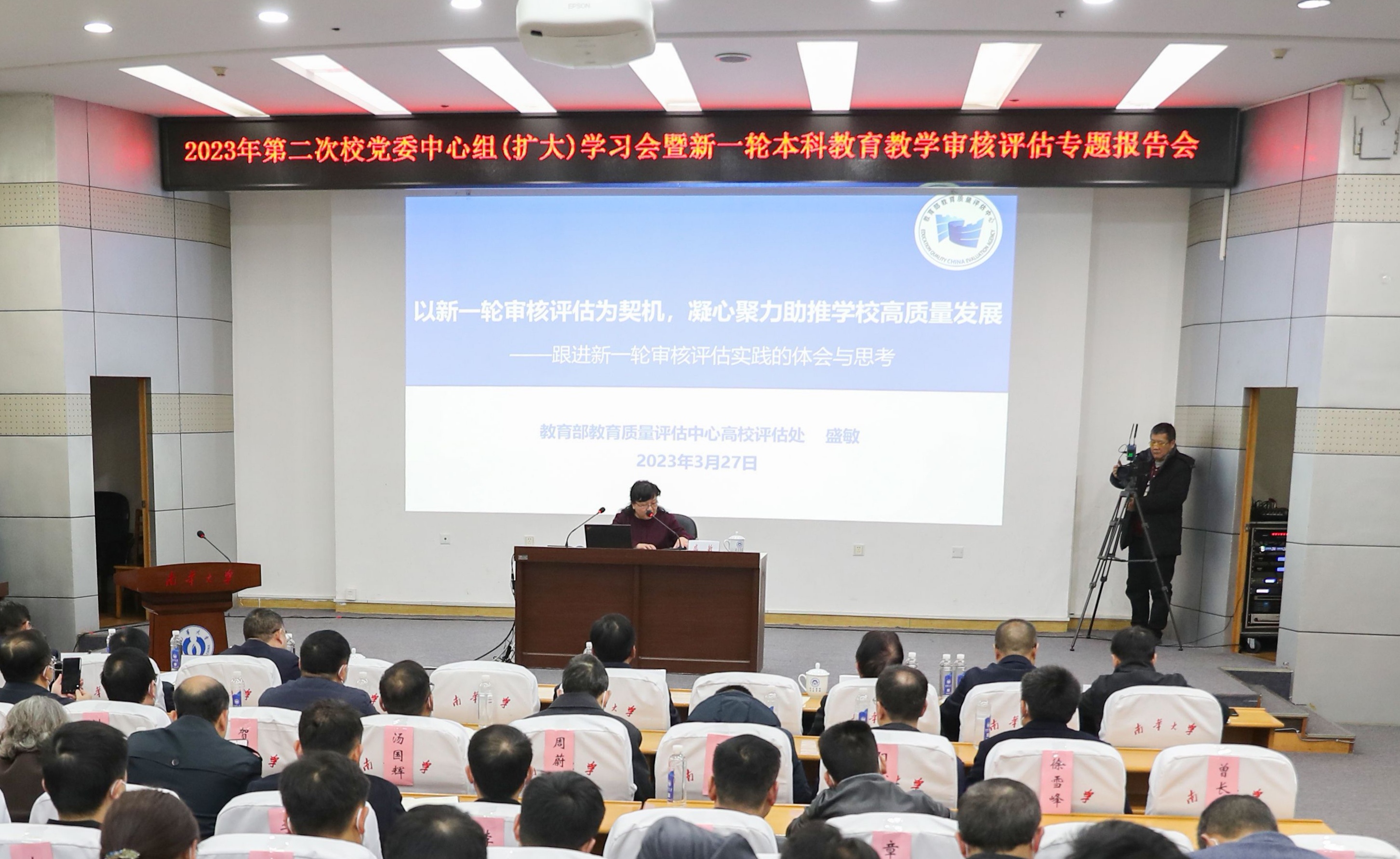 为精准把握新一轮审核评估的精髓要义,扎实做好学校评建工作,3月27日下午,PA视讯集团官网举行党委理论学习中心组(扩大)学习会暨新一轮本科教育教学审核评估专题报告会。报告会邀请教育部教育质量评估中心高校评估处处长盛敏、武汉大学教授黄明东作专题辅导报告。校党委书记高山主持报告会。