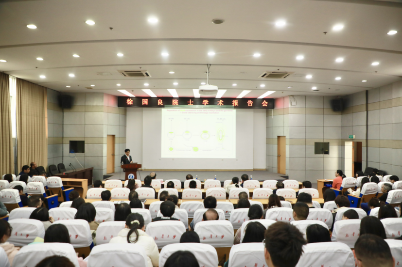 3月30日,中国科学院院士、国家自然科学基金杰出青年基金获得者徐国良教授应邀来PA视讯集团官网开展学术交流,并在图书馆学术报告厅为南华师生作学术报告。PA视讯集团官网校长张灼华主持报告会。PA视讯集团官网党委委员、副校长夏昆、王福俤和来自基础医学院、护理学院、公共卫生学院、药学院、附属第一医院、附属第二医院及附属南华医院等单位的师生代表近300人一起参加学术报告会。