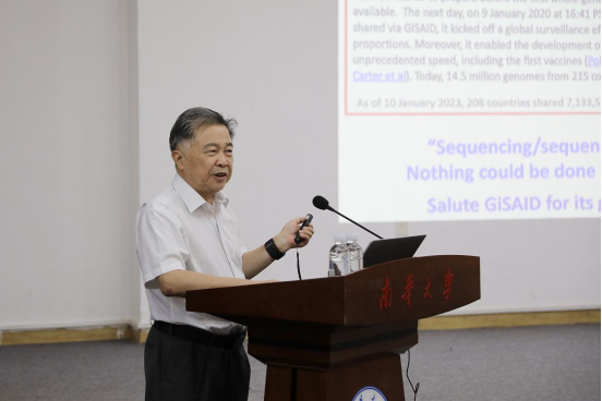 杨焕明院士以《DNA,HGP和精准医学》为题作学术报告。他以新冠疫情为引,介绍了基因、基因组和生命的关系。生命科学的两次革命即DNA双螺旋结构的发现和国际人类基因组计划 (HGP),作为亲历者,杨院士向在场师生介绍了中国最初参加HGP1%任务至今的进步:中国从当初落后的“穷、难、累”,到今天中国科学家的贡献基本覆盖基因组学的所有领域。国际人类基因组计划 (HGP) 的完成,开辟了组学新领域,催生了测序新技术,让设计生命和创造生命成为可能,开创了“共需、共有、共为、共享”的合作文化,改变了全球科研运作的格局。