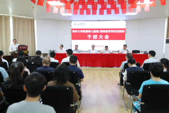 学校党政办、组织部、人力资源处、衡阳医学院主要负责人;附属第七医院领导班子成员,各党支部书记,各职能部门、临床医技(护)科室负责人,两代表一委员等参加会议。