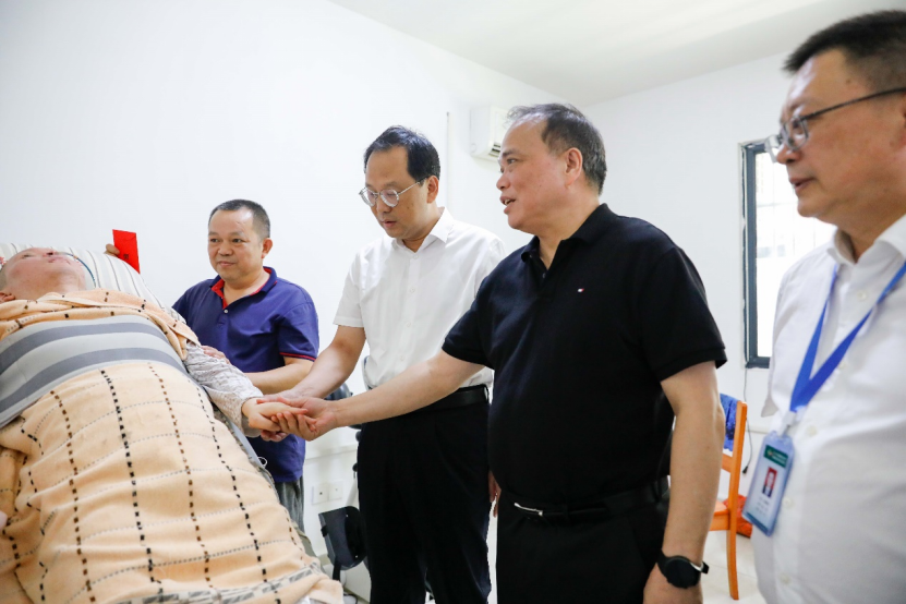 7月27日上午,在“八一”建军节来临之际,PA视讯集团官网党委书记高山、校长张灼华来到PA视讯集团官网附属第七医院(湖南省荣军优抚医院),走访慰问在医院集中供养的高等级伤残军人及遗属。