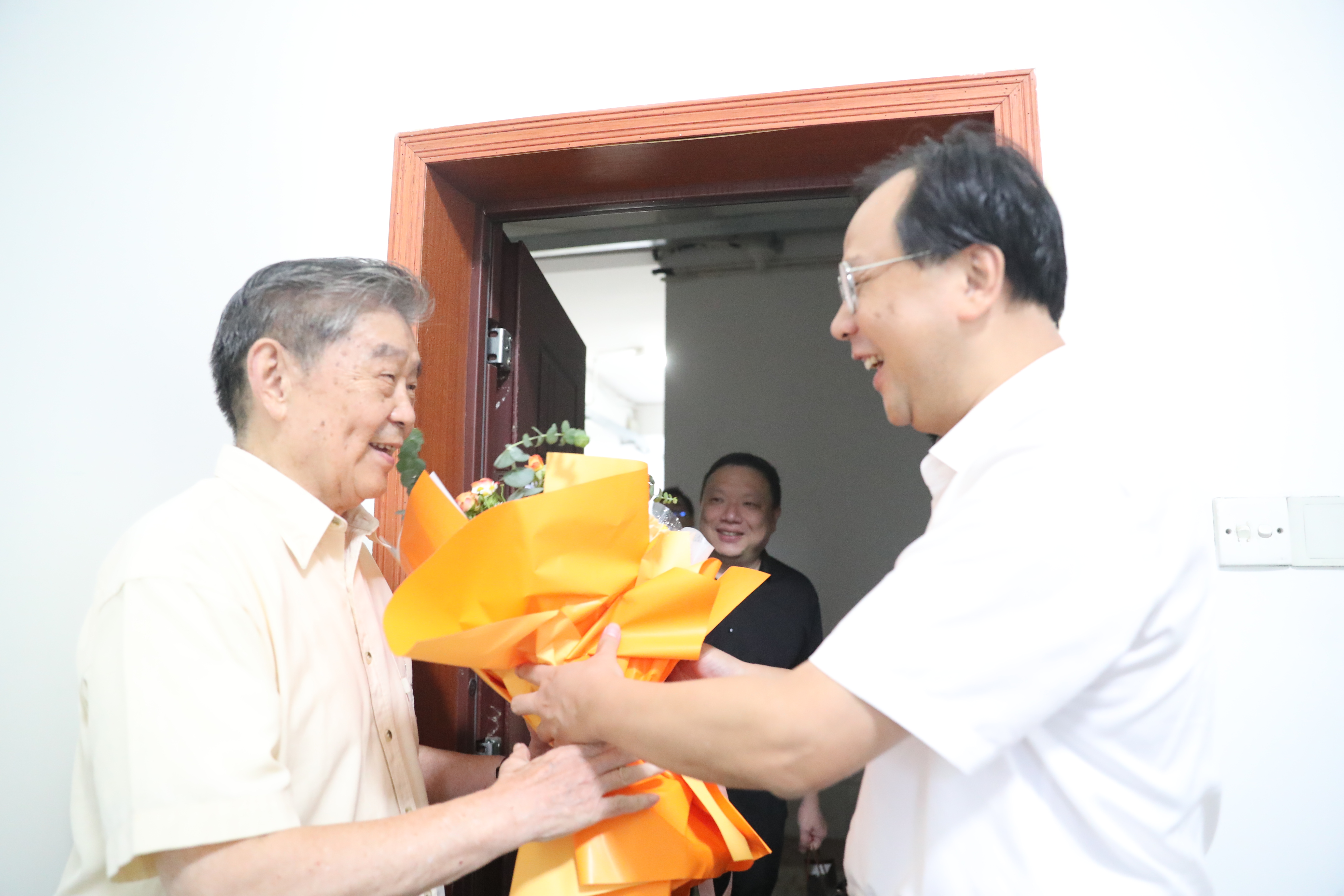 在医研楼,校党委书记高山看望慰问了PA视讯集团官网病理生理学科创始人、原衡阳医学院院长杨永宗教授。杨永宗教授自1975年起从事动脉粥样硬化的研究工作,先后承担了多项国家级、省级重点课题研究,发表科研论文60余篇,取得了多项科研成果。如今,86岁高龄的他依然奋战一线、发光发热,深受学生尊敬爱戴。高山表示,学校能够取得今天的成绩,得益于老一辈南华人的辛勤付出。他握住杨永宗教授的手,细细询问杨教授身体近况和工作生活情况,并叮嘱杨永宗教授保重身体,现场气氛温馨愉悦。
