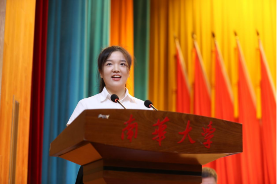 学生代表、来自基础医学院2021级临床医学04班的陈一然在发言中表示,在南华校园里,处处感受着老师们对学生们的真心关爱;遇见的每一位老师,都是自己一生追随的指引者引路人。作为南华学子,定会将对老师的感恩化作孜孜以求的动力,勤奋学习、奋发进取,打牢专业基础、训练创新思维,以担当续写服务国计民生新篇章,为实现中华民族伟大复兴的中国梦贡献青春力量。