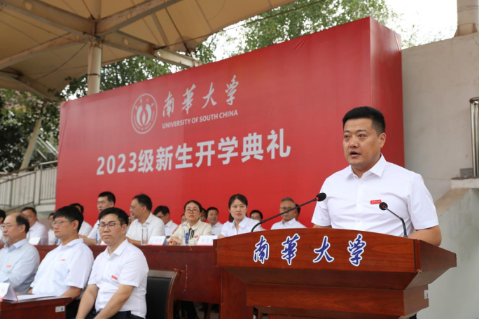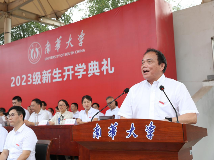 高山代表学校欢迎9756名本科生、2365名研究生加入南华大家庭。“一入南华门,终身南华人”。他寄语全体新生,要胸怀梦想,不断创新,逐梦南华,不负时代,不负华年,创造属于全体南华人的辉煌和荣耀,共同迎接更加光辉灿烂的明天!