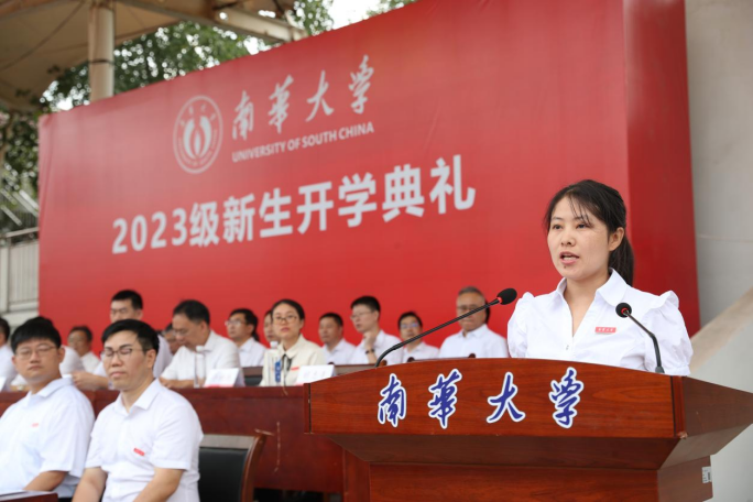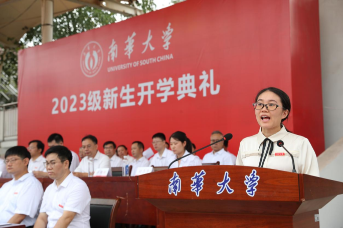 “南华,我爱你”。经济管理与法学学院刘思源同学作新生代表热情发言。她号召同学们向优秀前辈们学习,志存高远,勤奋学习,勇于拼搏,勤于实践,自觉承担起南华人的责任和使命,努力为“双一流”建设添砖加瓦,积极投身中国式现代化建设事业,为实现中华民族伟大复兴贡献南华力量!
